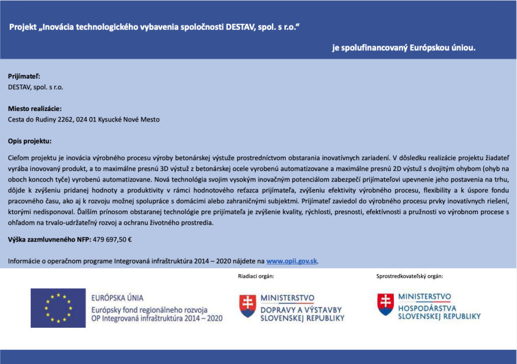Projekt inovacia technologickeho vybavenia spolocnosti DESTAV, spol. s r.o